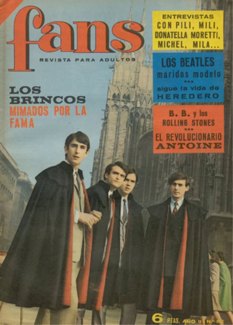y ese tipo de cosas, me pongo malo, porque no es verdad. La escena musical que había en España en los años sesenta era apabullante y una de las más importantes de todo el mundo. Y muchas veces con el apoyo de las instituciones, por ejemplo, con los programas de Televisión Española de Alfredo Amestoy que iba por los pueblos a descubrir bandas de rock, festivales y sellos discográficos montados por gente muy cercana al poder. Era una manera de entender que había que canalizar la expresión juvenil y todos los grupos estaban en el mismo ambiente. La riqueza cultural que aportó todo eso fue increíble. Yo te he hablado de los festivales que hubo aquí en León, pero había bandas en muchos sitios que revolucionaron sus barrios. Grupos como Los Salvajes, Los Brincos, Los Bravos, Los Cheyenes, Los Canarios, Los No, etc. Por no hablar de las revistas españolas que plasmaban todo este movimiento: la revista Fans, Discóbolo, Alta Fidelidad, etc. Es alucinante ver cómo eran una explosión de color y cómo eran las melenas que había en esa época.