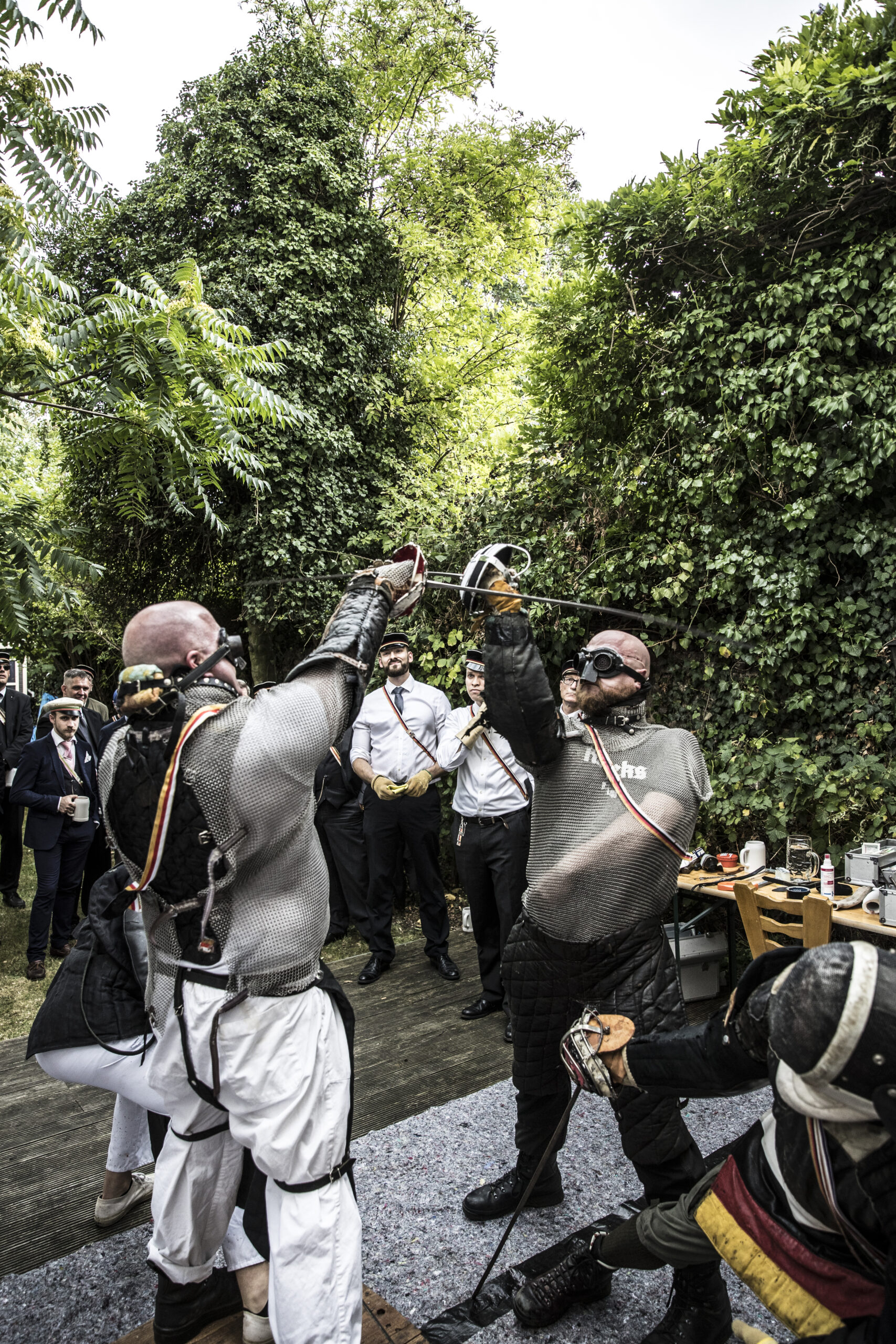 Practicado exclusivamente por confraternidades masculinas en Alemania y Austria, el Mensur es un lance ritual que va más allá de las tradiciones del duelo clásico y la esgrima deportiva. Las reuniones son organizadas en el seno de confraternidades universitarias de diversa naturaleza –desde las políticamente alineadas Burschenschaft hasta los más burgueses o católicos Corps–, y los participantes del Mensur son elegidos por sus compañeros para lograr una cierta equidad entre los dos duelistas. Por ejemplo, para equilibrar diferencias de estatura, se colocan plataformas debajo de los pies del estudiante más bajo.