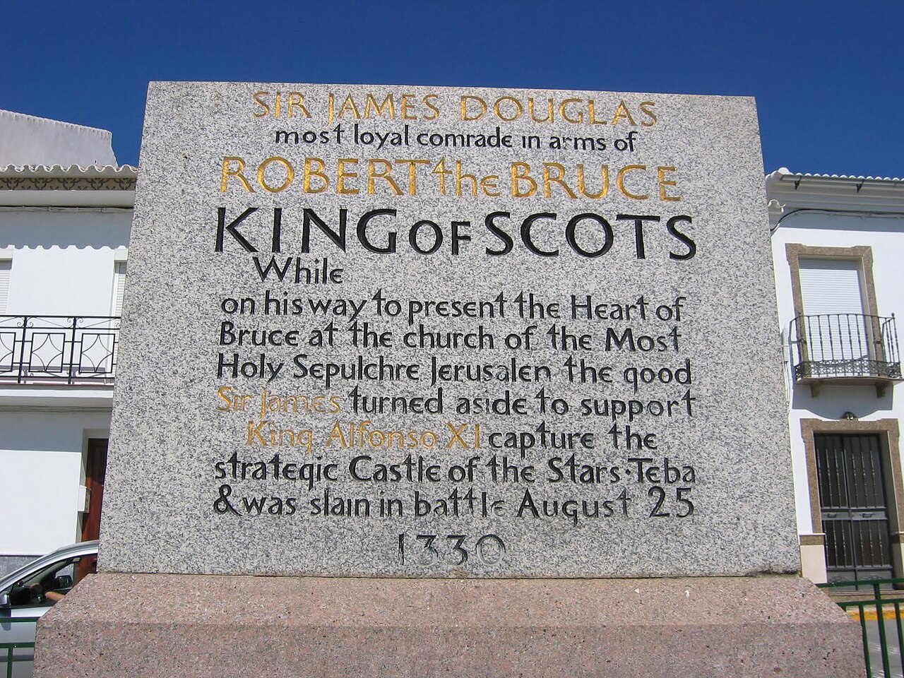 Días después, Alfonso XI logró abrir brecha en la muralla de la ciudad y obtuvo la rendición de Teba. El sultán Muhammad IV se había hecho con el relicario, el cual devolvió al soberano castellano. En tributo a Sir James Douglas y sus hombres, el Rey envió el corazón de Roberto I a Escocia, acompañado por una guardia de honor, al igual que los restos del comandante escocés y sus hombres. El corazón de The Bruce se depositó bajo el altar de la abadía de Melrose y el cuerpo de Sir James Douglas en el panteón familiar de la iglesia de St. Bride. En España ha quedado el legado de su historia y una conmemoración al valor mostrado en combate en forma de un monolito en la Plaza de España de Teba.