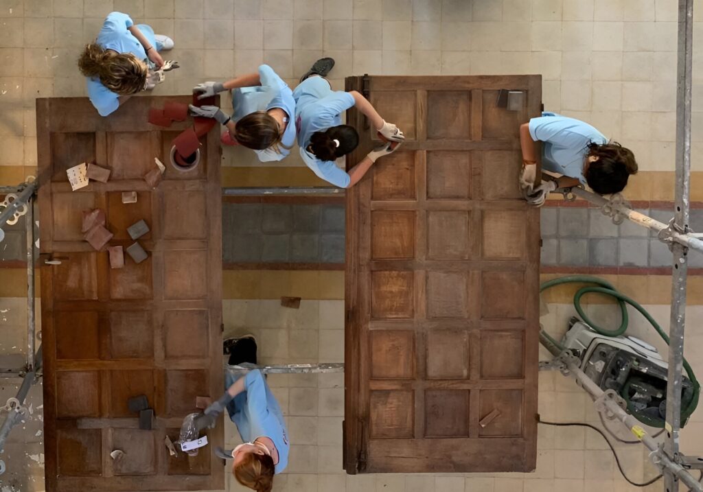 El trabajo podría parecer hercúleo porque uno no se imagina restaurando iglesias todos los días. Alumnos, profesores y sacerdotes, todos juntos, llevan algunos años apostando por esta restauración de las piedras y de las piedras vivas. Todos juntos. Tiene gracia, de hecho, que la actividad naciese del departamento de pastoral del CEU y no de, qué sé yo, el equipo de mantenimiento. Fue un sacerdote quien entendió la necesidad de reconstruir España.